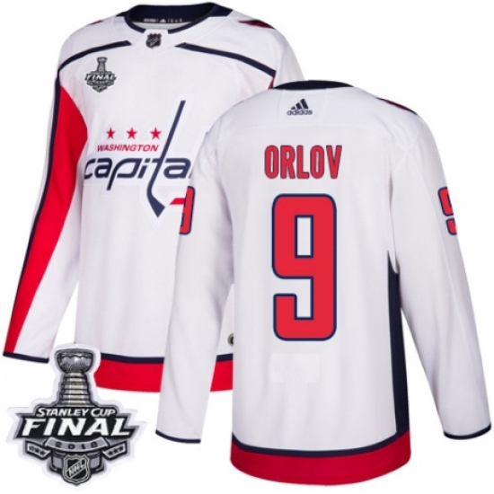 Youth Adidas Washington Capitals #9 Dmitry Orlov Authentic White Away 2018 Stanley Cup Final NHL Jersey