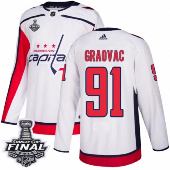 Men's Adidas Washington Capitals #91 Tyler Graovac Authentic White Away 2018 Stanley Cup Final Champions NHL Jersey
