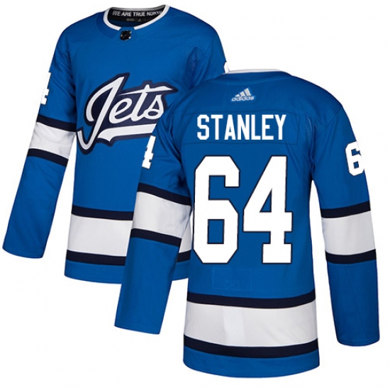 Men's Adidas Winnipeg Jets #64 Logan Stanley Authentic Blue Alternate NHL Jersey