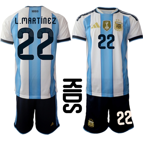 Youth Argentina #22 L.MARTINEZ National Team FIFA x World Cup 2026 Home White On Field Kids Jersey