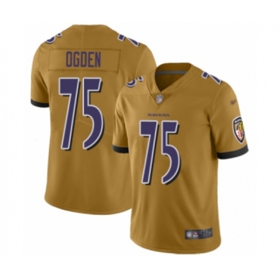 >Youth Baltimore Ravens #75 Jonathan Ogden Limited Gold Inverted Legend Football Jersey