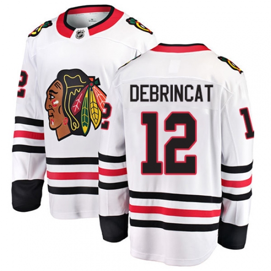 Home>NHL>Chicago Blackhawks>Alex DeBrincat>Youth Chicago Blackhawks #12 Alex DeBrincat Fanatics Branded White Away Breakaway NHL Jersey