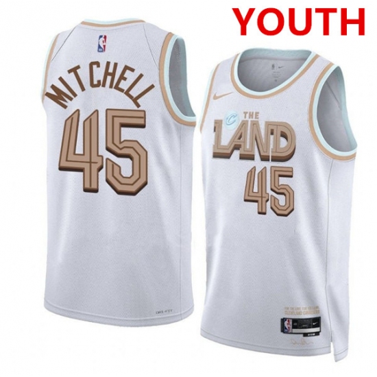 Youth Cleveland Cavaliers #45 Donovan Mitchell White City Edition Stitched Jersey