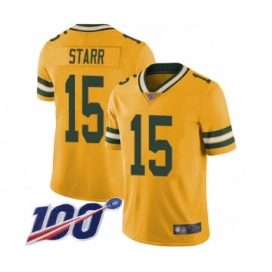 Men's Green Bay Packers #15 Bart Starr Limited Gold Rush Vapor Untouchable 100th Season Football Jersey