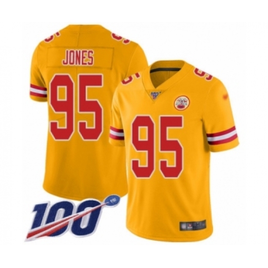 >Youth Kansas City Chiefs #95 Chris Jones Limited Gold Inverted Legend 100th Season Football Jersey