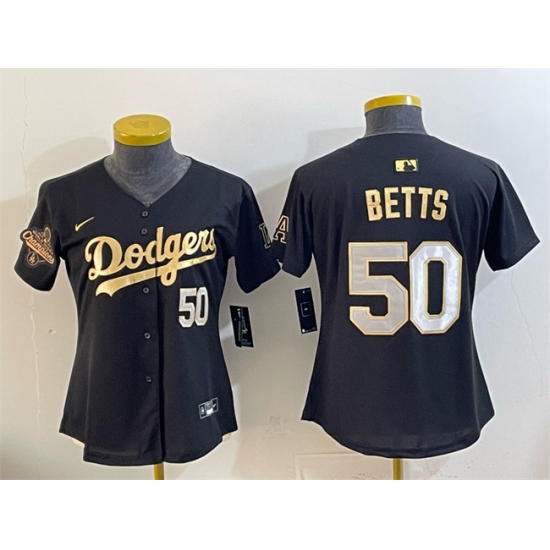 Women's Los Angeles Dodgers #50 Mookie Betts Number Mexico Black Cool Base Stitched Jersey