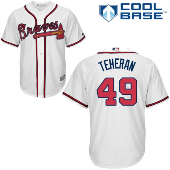 Home>MLB>Atlanta Braves>Julio Teheran>Youth Majestic Atlanta Braves #49 Julio Teheran Replica White Home Cool Base MLB Jersey
