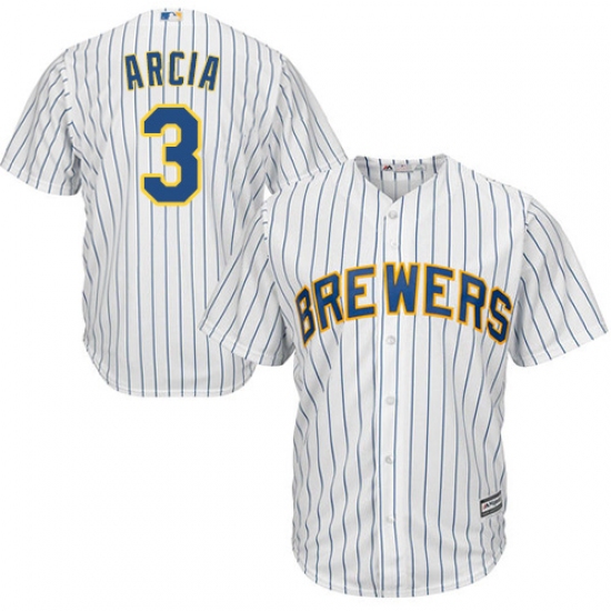 Home>MLB>Milwaukee Brewers>Orlando Arcia>Youth Majestic Milwaukee Brewers #3 Orlando Arcia Replica White Alternate Cool Base MLB Jersey