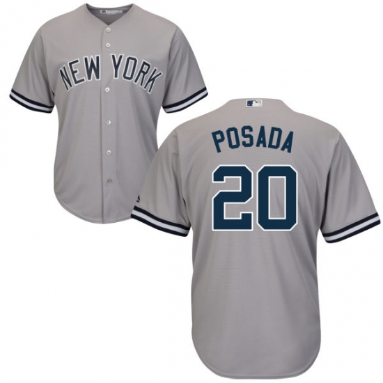 Home>MLB>New York Yankees>Jorge Posada>Youth Majestic New York Yankees #20 Jorge Posada Authentic Grey Road MLB Jersey