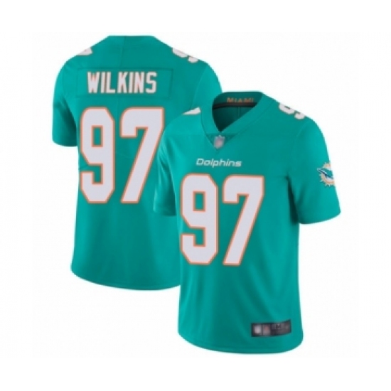 >Youth Miami Dolphins #97 Christian Wilkins Aqua Green Team Color Vapor Untouchable Limited Player Football Jersey
