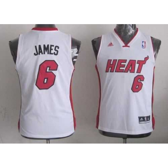 Youth NBA Miami Heat #6 LeBron James White Stitched Jersey
