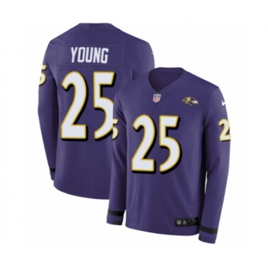 >Youth Nike Baltimore Ravens #25 Tavon Young Limited Purple Therma Long Sleeve NFL Jersey