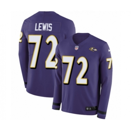 >Youth Nike Baltimore Ravens #72 Alex Lewis Limited Purple Therma Long Sleeve NFL Jersey