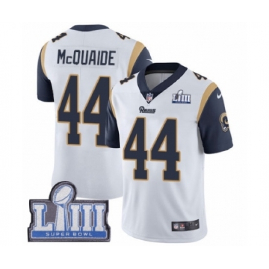 Women's Nike Los Angeles Rams #44 Jacob McQuaide White Vapor Untouchable Limited Player Super Bowl LIII Bound NFL Jersey