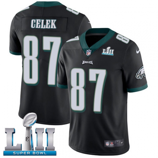 Youth Nike Philadelphia Eagles #87 Brent Celek Black Alternate Vapor Untouchable Limited Player Super Bowl LII NFL Jersey