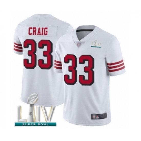 >Youth San Francisco 49ers #33 Roger Craig Limited White Rush Vapor Untouchable Super Bowl LIV Bound Football Jersey