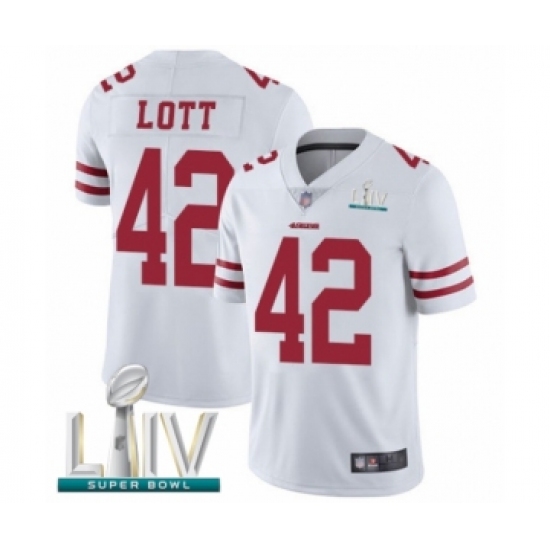 Men's San Francisco 49ers #42 Ronnie Lott Limited White Rush Vapor Untouchable Super Bowl LIV Bound Football Jersey
