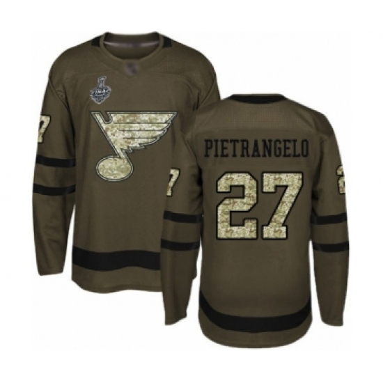 >Youth St. Louis Blues #27 Alex Pietrangelo Authentic Green Salute to Service 2019 Stanley Cup Final Bound Hockey Jersey