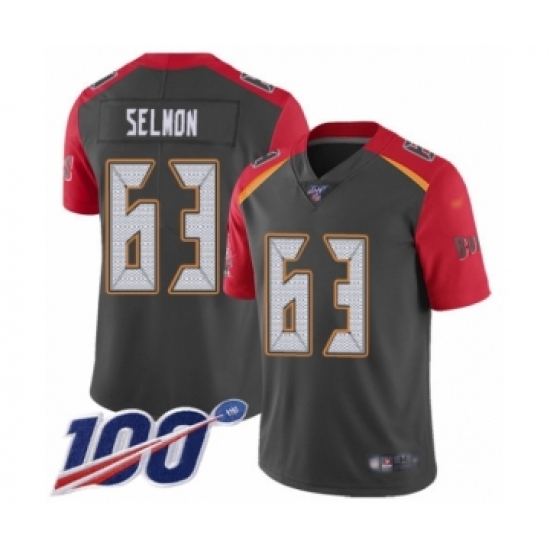 >Youth Tampa Bay Buccaneers #63 Lee Roy Selmon Limited Gray Inverted Legend 100th Season Football Jersey