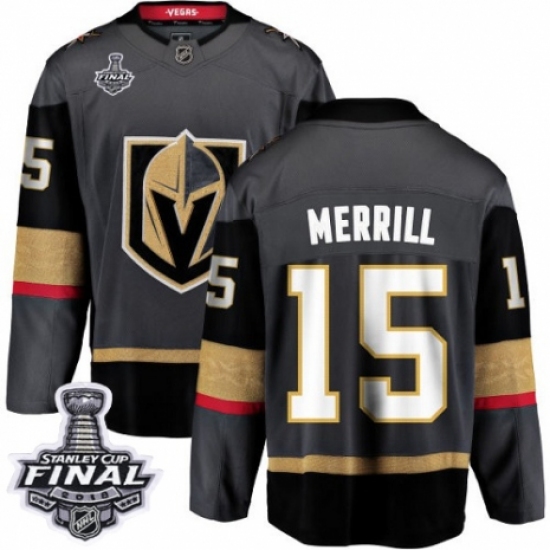 >Youth Vegas Golden Knights #15 Jon Merrill Authentic Black Home Fanatics Branded Breakaway 2018 Stanley Cup Final NHL Jersey