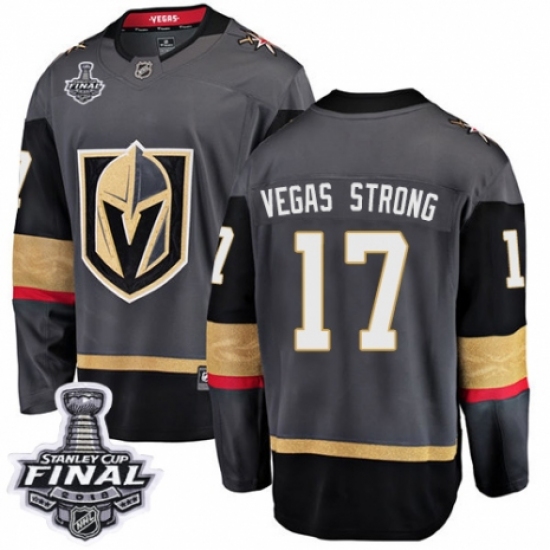 Youth Vegas Golden Knights #17 Vegas Strong Authentic Black Home Fanatics Branded Breakaway 2018 Stanley Cup Final NHL Jersey