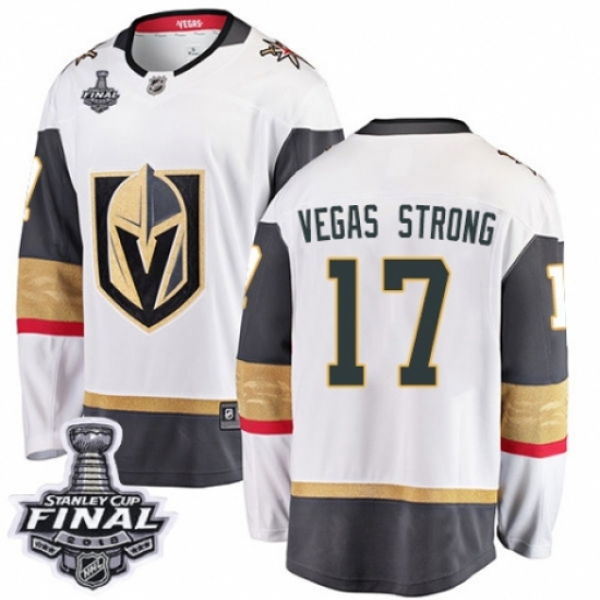 Men's Adidas Vegas Golden Knights #17 Vegas Strong Authentic White Away 2018 Stanley Cup Final NHL Jersey