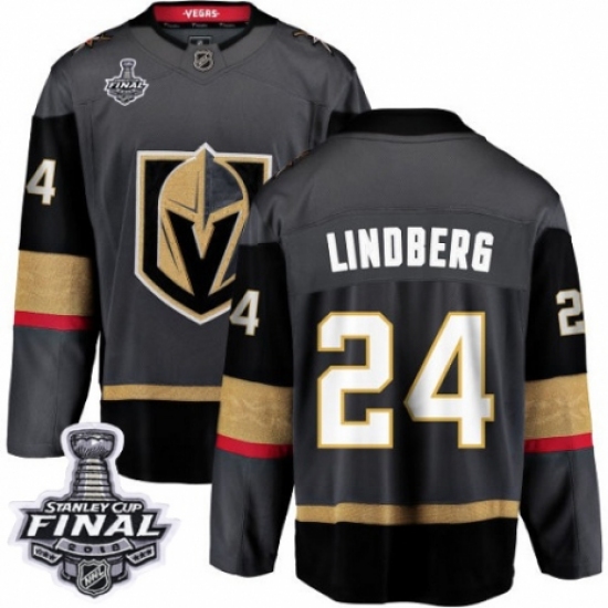 Youth Vegas Golden Knights #24 Oscar Lindberg Authentic Black Home Fanatics Branded Breakaway 2018 Stanley Cup Final NHL Jersey