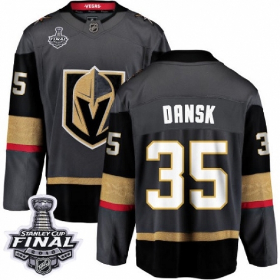 Youth Vegas Golden Knights #35 Oscar Dansk Authentic Black Home Fanatics Branded Breakaway 2018 Stanley Cup Final NHL Jersey