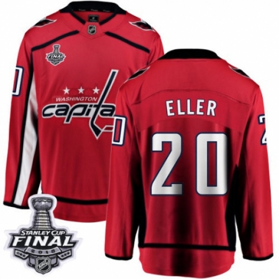 >Youth Washington Capitals #20 Lars Eller Fanatics Branded Red Home Breakaway 2018 Stanley Cup Final NHL Jersey
