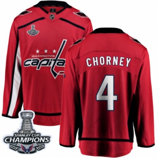Youth Washington Capitals #4 Taylor Chorney Fanatics Branded Red Home Breakaway 2018 Stanley Cup Final Champions NHL Jersey