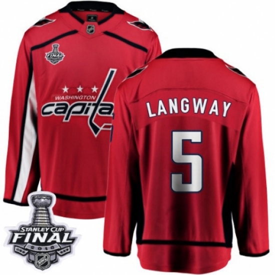 Youth Washington Capitals #5 Rod Langway Fanatics Branded Red Home Breakaway 2018 Stanley Cup Final NHL Jersey