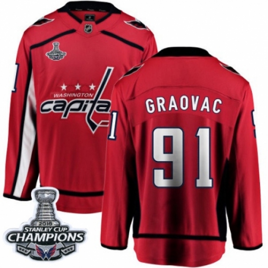 Men's Washington Capitals #91 Tyler Graovac Fanatics Branded Red Home Breakaway 2018 Stanley Cup Final Champions NHL Jersey