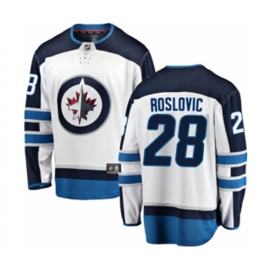 >Youth Winnipeg Jets #28 Jack Roslovic Fanatics Branded White Away Breakaway NHL Jersey